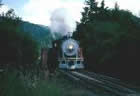 This was the start of the Blue Goose excursions. On weekends, with the line to themselves, passengers got pulled by a Baldwin 2-8-2 steam engine — Engine No. 19, on loan from Kyle's Yreka Western operation. On weekdays, the diesel locomotives were used.