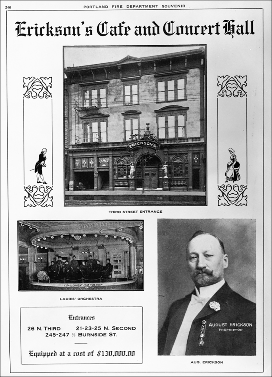 AUGUST ERICKSON CAME to Portland from Finland in the early 1880s, and went directly into the saloon business. By 1890 he had a reputation as an honest, charitable publican, and a favorite of rough working men — loggers and sailors and factory workers.
