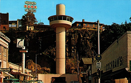 The Oregon City Municipal Elevator in its current form. (Image: Postcard)